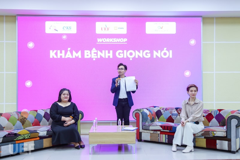 Nhằm nâng cao nhận thức của sinh viên về tầm quan trọng của yếu tố này và hướng dẫn các bạn khắc phục những hạn chế trong giọng nói, CLB Mic Zone UEF phối hợp với Green Voices tổ chức buổi workshop “Khám bệnh giọng nói”. Dưới sự dẫn dắt của các Voice Coach hàng đầu, UEFers đã tiếp thu nhiều bí kíp bổ ích.