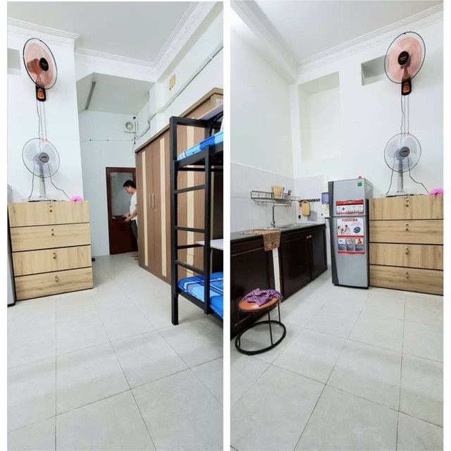 Trang bị đầy đủ nội thất, gồm: giường, nệm, tủ quần áo, tủ lạnh, máy lạnh, nhà vệ sinh.