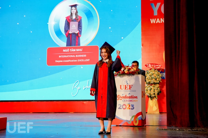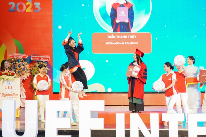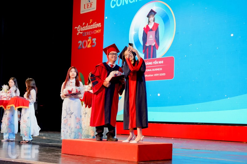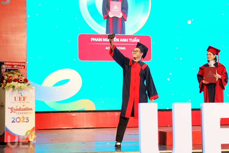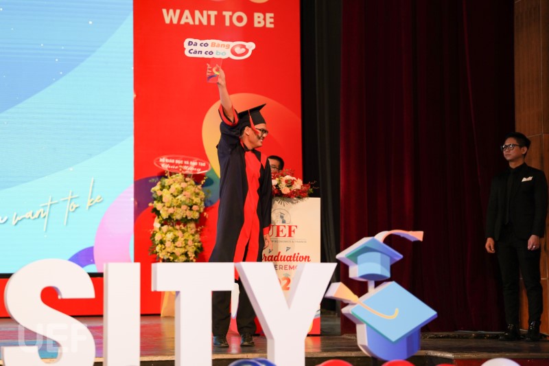 Lễ tốt nghiệp là cơ hội để UEFers chính thức nói lời chào tạm biệt với mái trường mến yêu cũng như khẳng định tôi là một UEFer tỏa sáng. Vì thế, trên bục vinh danh không khó để bắt gặp sự đan xen của nhiều cảm xúc khác nhau: vui mừng, cảm động, bùi ngùi, lưu luyến,... nhưng để lại ấn tượng sâu sắc nhất có lẽ là những tân cử nhân đã không ngại ngần bộc lộ cá tính.