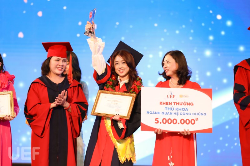 Đi kèm với thành tích thủ khoa nổi bật, UEF cũng vinh danh sinh viên ở nhiều lĩnh vực khác như nghiên cứu khoa học; chứng chỉ quốc tế IELTS, TOEIC điểm số cao; hoạt động phong trào; hoạt động kết nối cộng đồng;... Bằng khen tuyên dương này thay lời cảm ơn mà UEF dành cho những đóng góp của khóa 2019 và sẽ là động lực để các thế hệ sau noi gương và tiếp bước, góp phần nâng cao hình ảnh năng động, sáng tạo và tích cực của sinh viên Nhà trường.