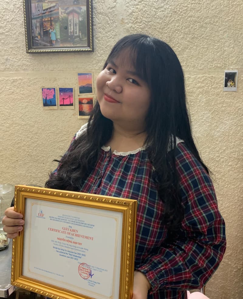 Trong các tiết học, cô luôn chủ động hỏi mình rất nhiều câu hỏi, tạo cơ hội để mình có thể mạnh dạn biểu đạt suy nghĩ, đồng thời đôi lần giúp mình nhận ra bản thân cũng rất “xịn”. Xuyên suốt những buổi học đó, dù ngắn nhưng cô đã nhanh chóng thấu hiểu được phần nào tính cách và khả năng của từng sinh viên. Mình sẽ luôn nhớ những điều cô đã từng nói với mình: “Em giỏi như vậy thì em phải biết cách thể hiện bản thân. Không cần phải suy nghĩ quá nhiều đâu. Sẽ thật đáng tiếc khi mình có khả năng nhưng lại không chứng minh cho mọi người thấy. Cô hoàn toàn tin em có thể làm được”. Chính những lời này đã thổi bùng lòng nhiệt huyết của mình, khiến mình khát khao chứng minh bản thân, đi đến những vị trí cao hơn và ngắm nhìn những phong cảnh đẹp hơn nữa. Cuối cùng, cuộc sống mình đã “nở hoa” khi nhận được Học bổng Tài năng của trường trong năm học 2021 - 2022.