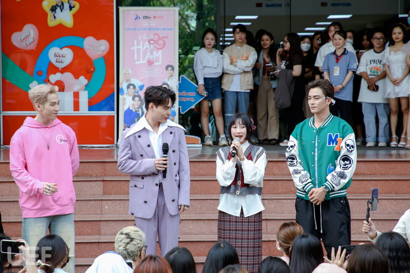 Bên cạnh đó, xuất hiện trong buổi giao lưu còn có diễn viên Midu, Vũ Thịnh, Lãnh Thanh, Tiko Tiến Công,… - Những thành viên của đoàn phim "Khi ta hai lăm"