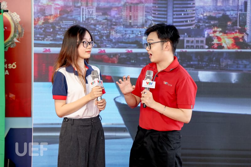Giao lưu cùng BLV Quang Huy, tìm hiểu kỹ thuật thực hiện các chương trình phát sóng trực tiếpTham dự Hội báo toàn quốc lần này, các bạn sinh viên Nhà UEF được tiếp thêm “lửa nghề", nhất là các bạn sinh viên năm 3, năm 4 đã có những định hướng chắc chắn cho tương lai của bản thân. Tại UEF, Nhà trường cũng thường xuyên tổ chức các hoạt động ngoại khóa, talkshow,... giúp sinh viên nâng cao kỹ năng và kiến thức thực tế nhằm chuẩn bị hành trang cho môi trường làm việc sau này.