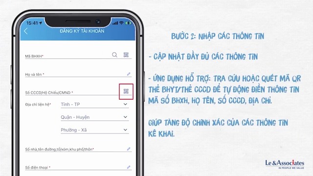 Cập nhật đầy đủ các thông tin. Ứng dụng hỗ trợ: tra cứu hoặc quét mã QR thẻ BHYT/Thẻ CCCD để tự động điền thông tin mã số BHXH, họ tên, số CCCD, địa chỉ giúp tăng độ chính xác của các thông tin kê khai.
