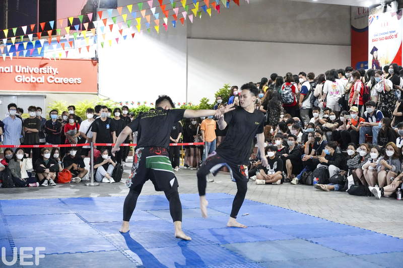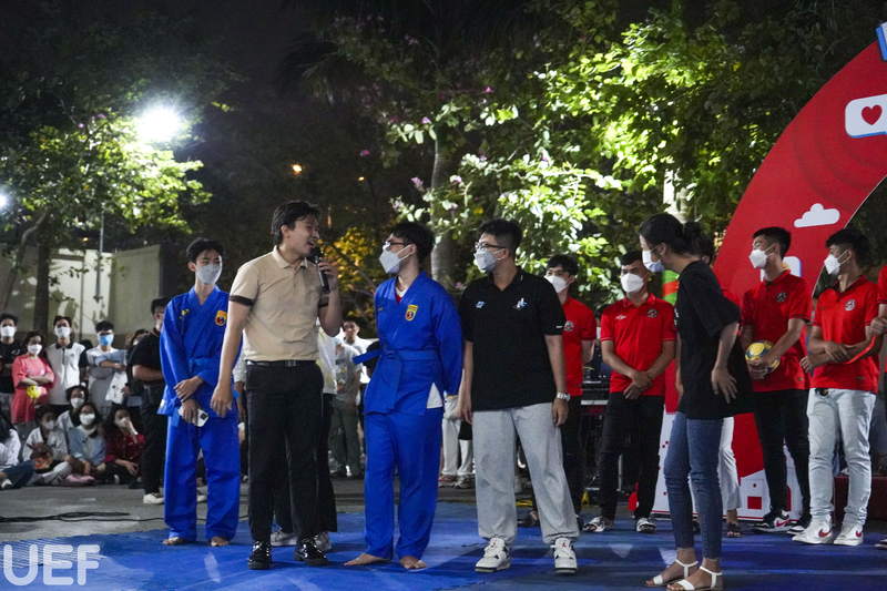 Tiếp nối đêm nhạc “The first day” do các câu lạc bộ (CLB) nghệ thuật D149, SEU, SMS và NCD biểu diễn vào ngày 28/2, tối qua - 11/3, sinh viên Nhà UEF, đặc biệt là các bạn tân sinh viên khóa 2021 tiếp tục được giao lưu, thưởng thức các tiết mục võ thuật, minigame bóng đá, bóng chuyền, cầu lông,… hấp dẫn, đặc sắc đến từ các CLB thể dục thể thao.