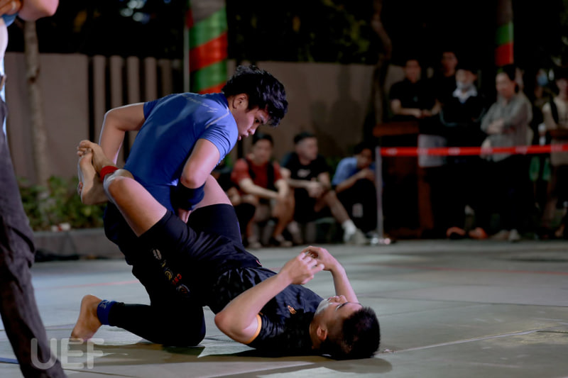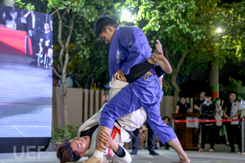 Nhằm mục đích khởi xướng, lan tỏa giá trị của bộ môn Jujitsu (Nhu thuật) đồng thời khích lệ tinh thần thể thao của sinh viên, tối qua - 10/4, CLB MMA UEF đã phối hợp với Phòng Công tác sinh viên UEF cùng các đơn vị liên quan tổ chức sự kiện “UEF Jujitsu Fighting College 2023”. Với loại hình thi đấu hấp dẫn và đầy tính mới lạ, sự kiện đã thu hút một lượng lớn sinh viên, người dân tham gia cổ vũ.