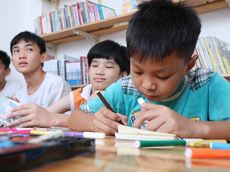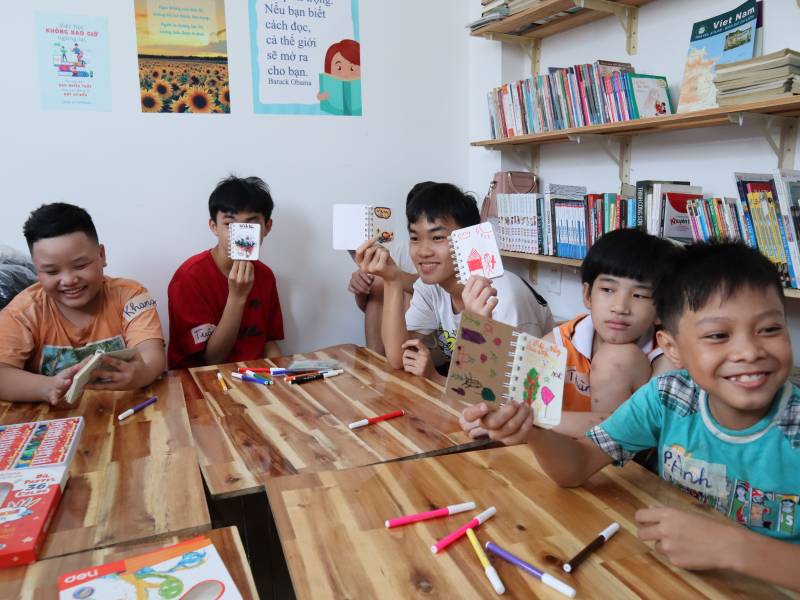 Ở hoạt động này, mỗi em được các anh chị sinh viên UEF tặng một cuốn sổ nhỏ xinh xắn. Ngay khi nhận được, các em nhanh chóng bắt tay vào việc trang trí “Sổ chi tiêu" của riêng mình. Thật không ngờ, chỉ trong một thời gian ngắn, cuốn sổ nào cũng được trang trí rất đẹp và đầy sáng tạo.