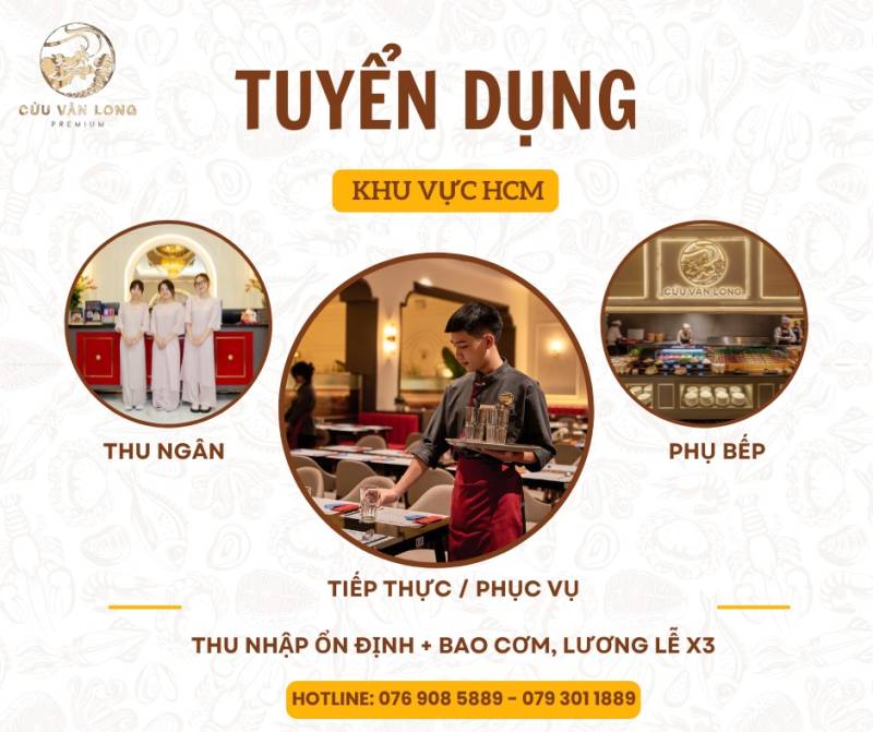 - Được đào tạo nghiệp vụ chuẩn nhà hàng cao cấp