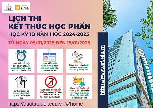 Ngày 20/5/2020, Phòng Đào tạo đã công bố lịch thi của HK192A, năm học 2019-2020. SV đăng nhập vào website daotao.uef.edu.vn để tra cứu lịch thi