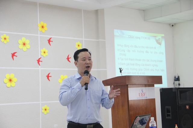Ông Ngô Quốc Khánh chia sẻ cùng sinh viên UEF những kinh nghiệm hữu ích thị trường chứng khoán