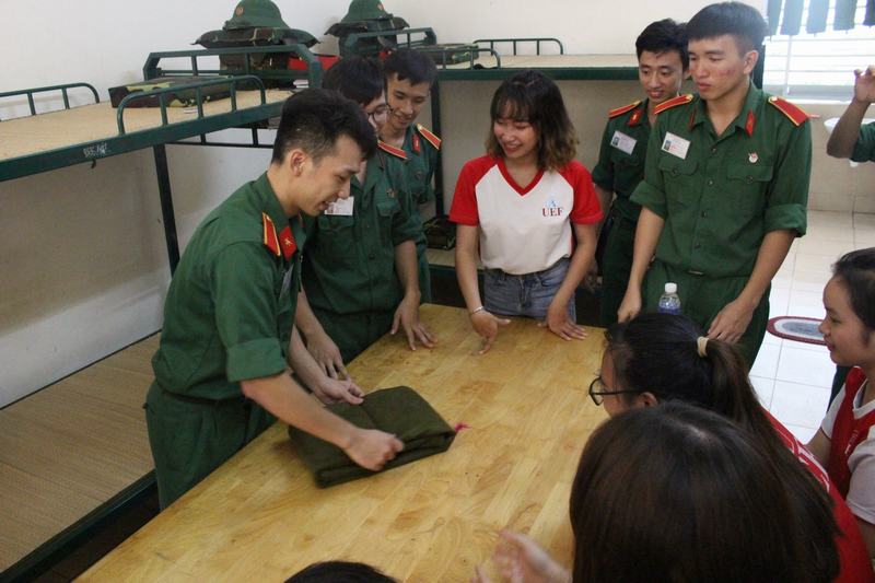 Chuyến đi này còn giúp các bạn hiểu hơn về môi trường quân đội thông qua việc tham quan nơi học tập, khu ăn ở, sinh hoạt hàng ngày của các chiến sĩ. Đặc biệt, các thành viên Nhà UEF còn được trực tiếp quan sát và trải nghiệm cách thức gấp chăn màn theo chuẩn "nhà binh".