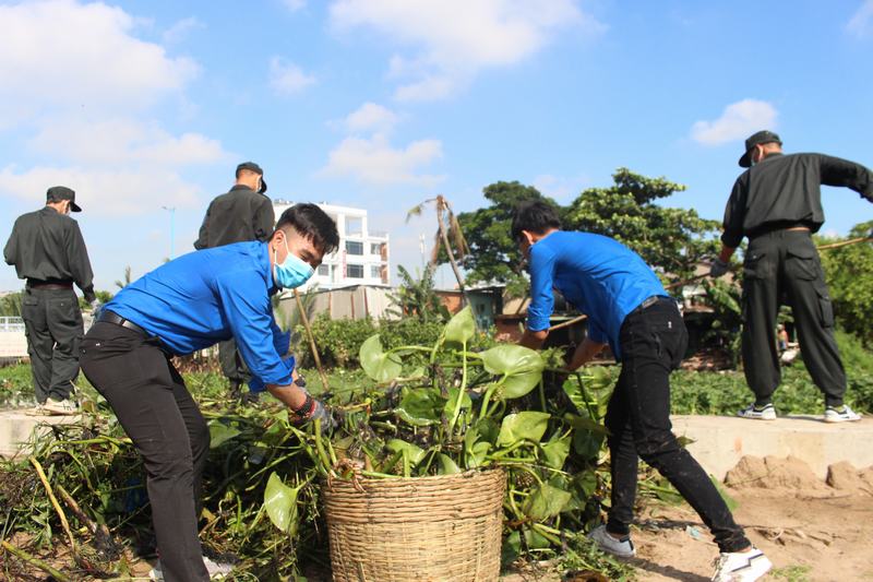 Tiếp tục phát huy sức trẻ trong các hoạt động vì cộng đồng, vì môi trường sống, sinh viên UEF đã tích cực thực hiện công tác thu gom rác, khơi thông tuyến rạch Lăng (đường Chu Văn An, Phường 12, Quận Bình Thạnh) ngay sau buổi lễ.