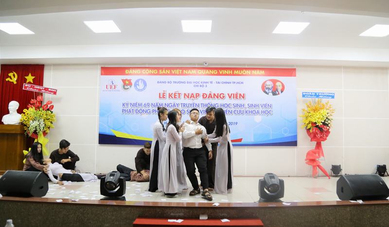 Vào sáng ngày 9/1, Ban Chấp hành Đoàn trường Đại học Kinh tế - Tài chính (UEF) phối hợp với Chi bộ 3 tổ chức "Lễ kết nạp Đảng viên, Mitting kỷ niệm 69 năm Ngày truyền thống học sinh, sinh viên (09/01/1950 - 09/01/2019) và phát động phong trào sinh viên nghiên cứu khoa học năm học 2018 - 2019".