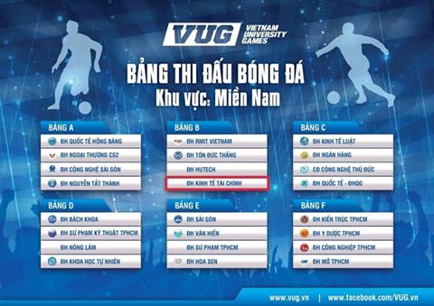 Bảng thi đấu bộ môn bóng đá tại VUG 2015