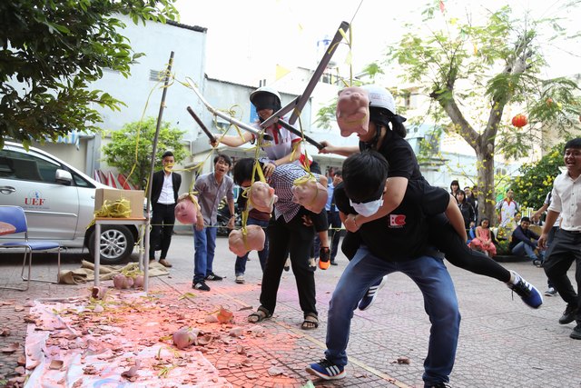 Các bạn sinh viên "máu lửa" với trò chơi bịt mắt đập heo đất