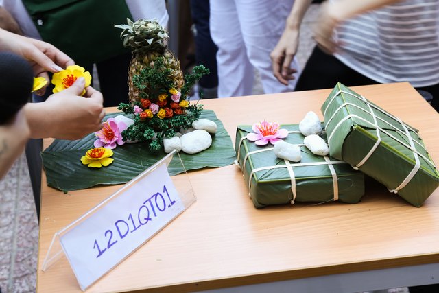 Những chiếc bánh chưng đẹp mắt được tạo thành từ bàn tay khéo léo của các bạn sinh viên