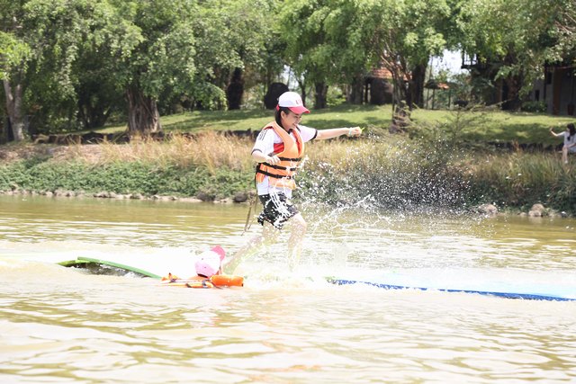 Cùng hào hứng trổ tài “khinh công vượt sông”