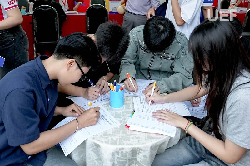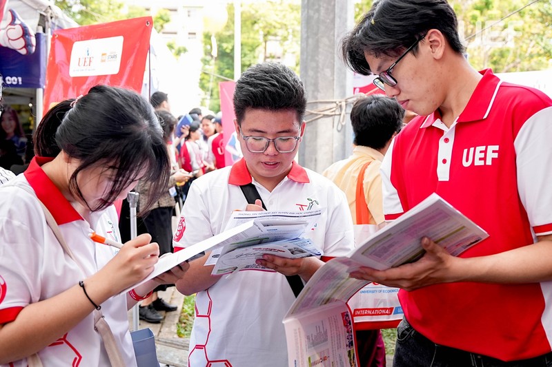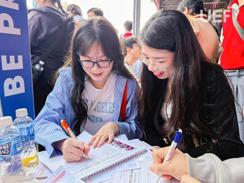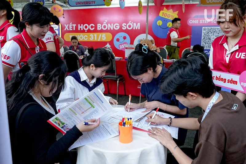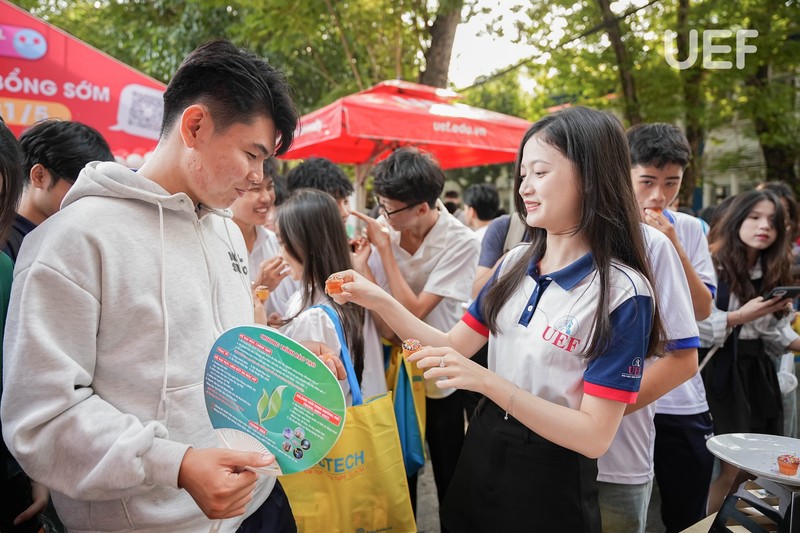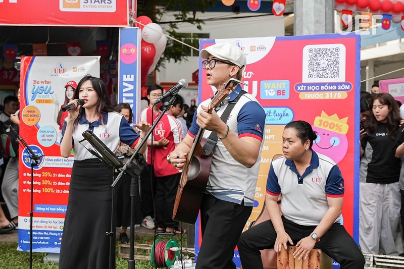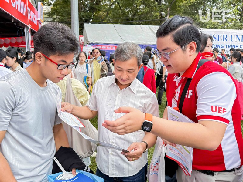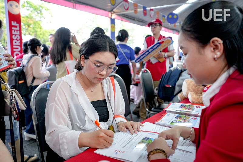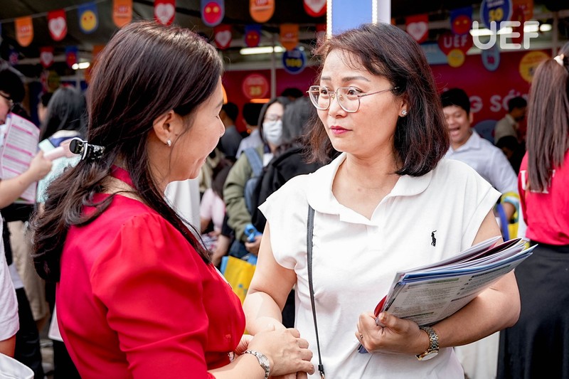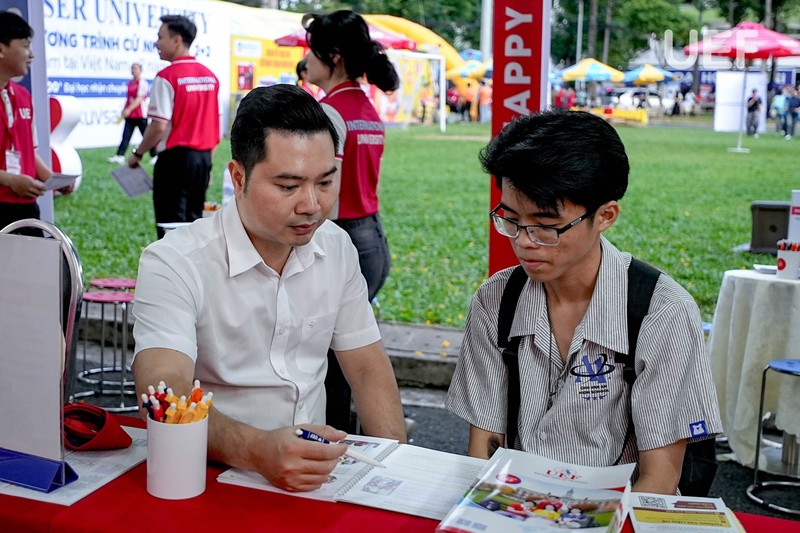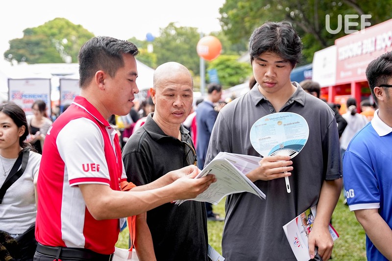 At UEF’s booth, students and parents received the latest updates on the 2025 admissions cycle, UEF’s enrollment methods, academic programs, bilingual international learning environment, and career opportunities after graduation, etc.