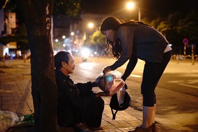 The homeless were totally amazed and joyful when receiving presents from the members of Vovinam Club