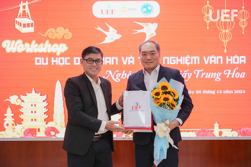 At the beginning, Mr. Do Quoc Anh introduced brief information about UEF to the representatives of Taipei Economic and Cultural Office in Ho Chi Minh city. He emphasized on international activities, increasing study abroad, meeting and cultural exchange activities for UEFers. For that reason, this effective workshop will better assist UEFers in achieving the goals. Mr. Do Quoc Anh’s speech then followed by Mr. Tran Hoa Hien. He also shared he very much welcomes UEFers coming to Taiwan to study, acquiring knowledge in the future. The Office will assist UEFers at their best, Shared Mr. Tran Hoa Hien.