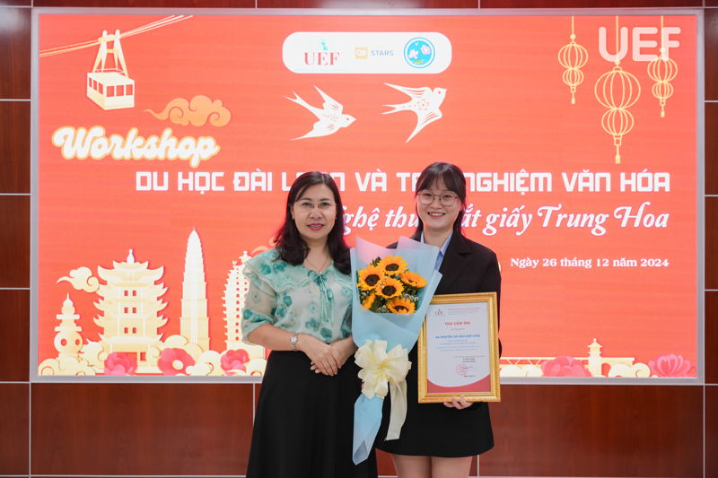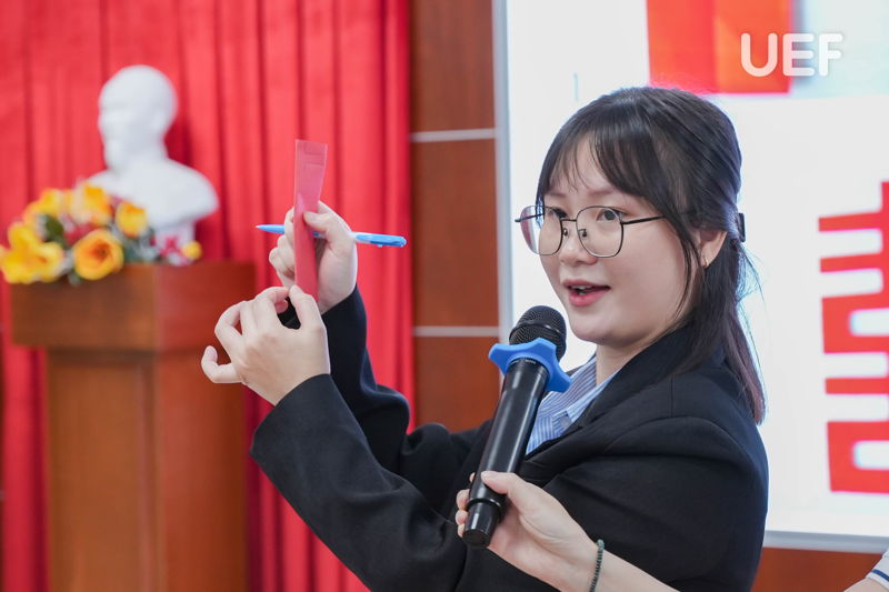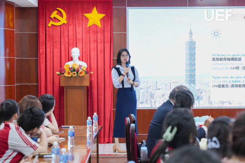 Ms. Nguyen Thi Thanh, representing the Taipei Economic and Cultural Office in Ho Chi Minh city, shared many information about Taiwan. UEFers got a deeper understanding about Taiwanese culture, people, and education to advance economic development, especially in semiconductor technology. She also introduced many attractive reasons for choosing Taiwan for international study through cultural similarities as well as Taiwan’s educational rankings. In addition, Ms. Nguyen Thi Thanh brought exciting Study abroad policies, which UEFers can discover such as MOE, HES…