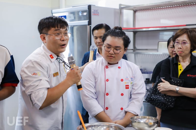 During the program, Singaporean students also had the opportunity to taste and make their own iced milk coffee, fruit spring rolls, and drinks under the guidance of UEF's barista experts. Besides, UEFers also tried the signature Singaporean pastry - Kaya Toast.