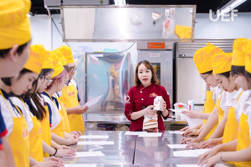 Welcomed and provided valuable knowledge for UEFers were Ms. Trat Thanh Thao - Head of Training Department of Nhat Huong Bakery Vocational Training center, Ms. Nguyen Quynh Tram - Lecturer of European pastries, together with the enthusiastic assistance from the team of baking specialists.
