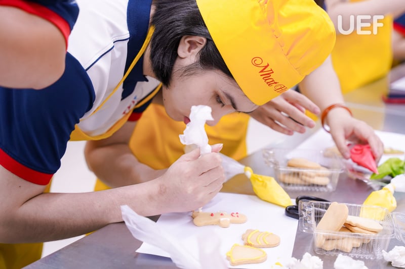 FTHMers then had the opportunity to immediately implement their skills by decorating cookies and making tiramisu. Under Ms. Pham Nguyen Quynh Tram’s detailed assistance, the exquisitely decorated cookies were created by the hands of FTHMers, in addition to being engaged in the tiramisu making process, from ingredient selection to the final product. Through these activities, UEFers got to implement their acquired skills into real-life, encourage creativity in addition to discover professional baking tips and enrich their job-related skillset in an inspirational environment.