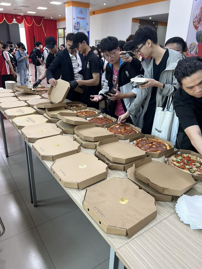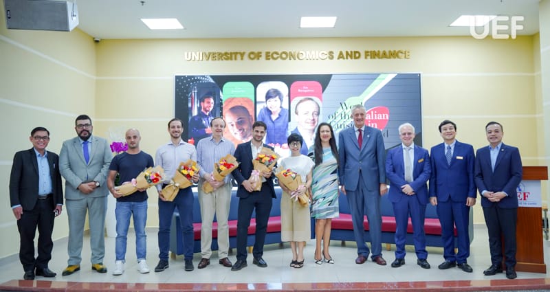 Joining the program to share their experiences with UEFers were Mr. Daniele Melito, known as "The Italian Uncle," founder and CEO of MULO; Mr. Ciro Sorrentino, the renowned Italian pizza chef; Ms. Chau Tieu Ngoc, founder of Sunshine Equipment; and Mr. Eric Baumgartner, founder and CEO of Dôme Hospitality.