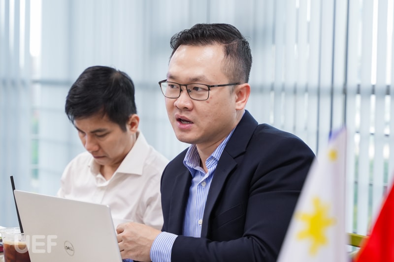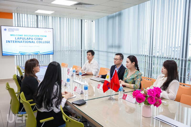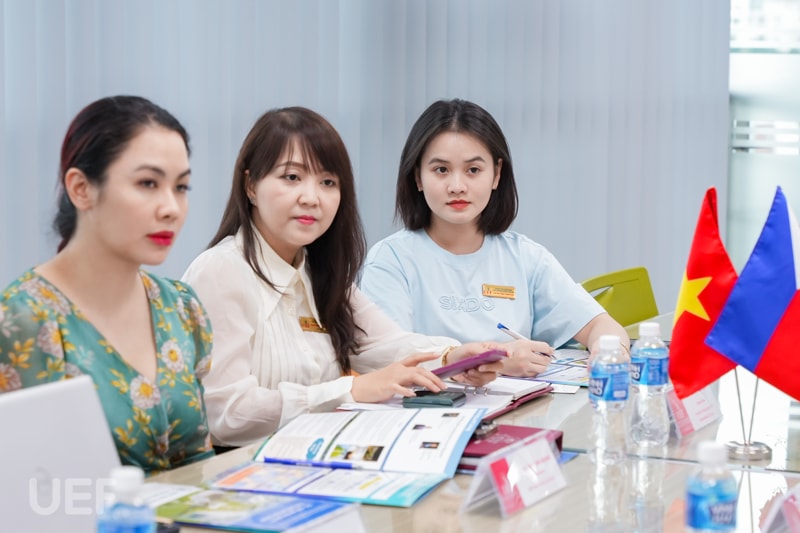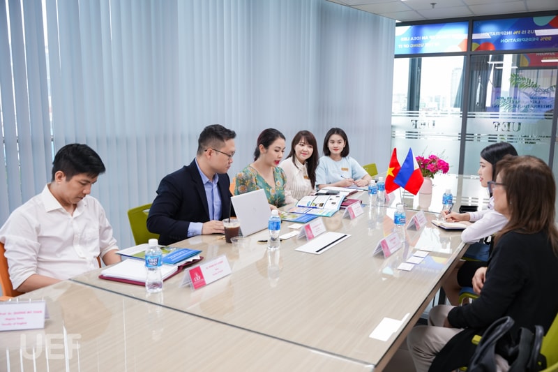 Representing UEF were Dr. Do Huu Nguyen Loc, Director of the UEF International Institute; Dr. Nguyen Hong Nhung, Deputy Director of the UEF International Institute; Mr. Pham Huy Cuong, Dean of the Faculty of English; and Ms. Pham Thi Thuy Linh, Deputy Dean of the Faculty of Languages and International Cultures.”