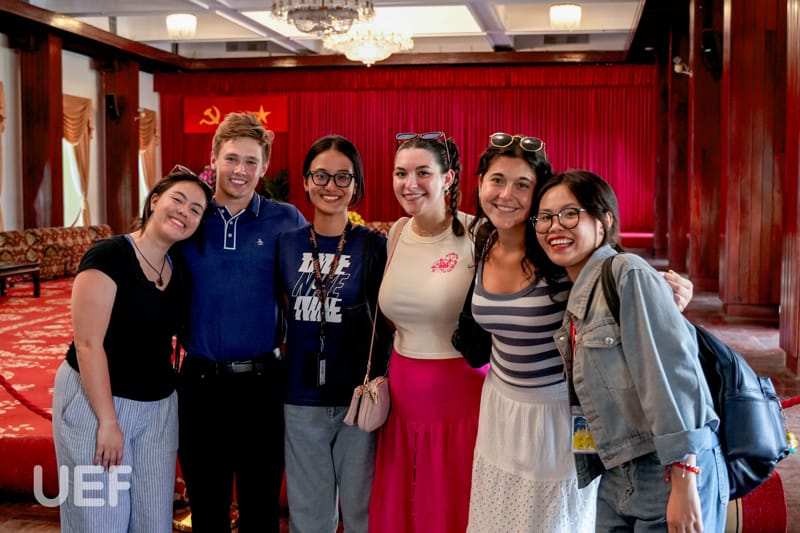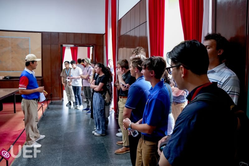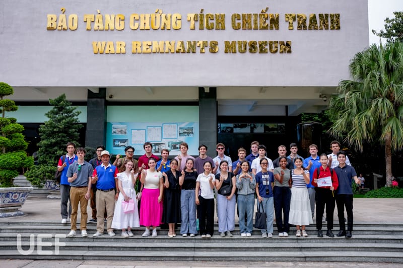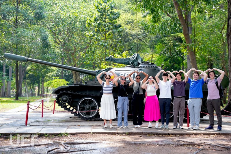 In the afternoon, under the instruction of Mr. Tran Trong Thanh - Lecturer, Tourism and Travel Services Management, US students toured the Independence Palace and War Remnants Museum.