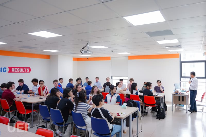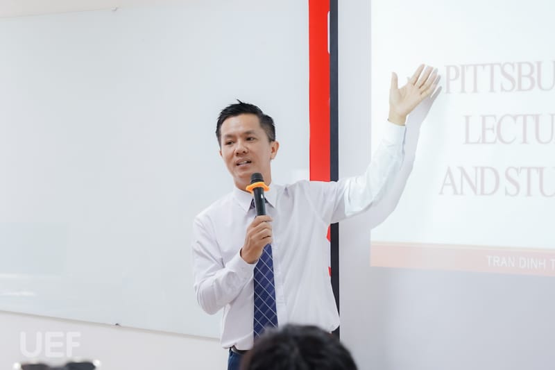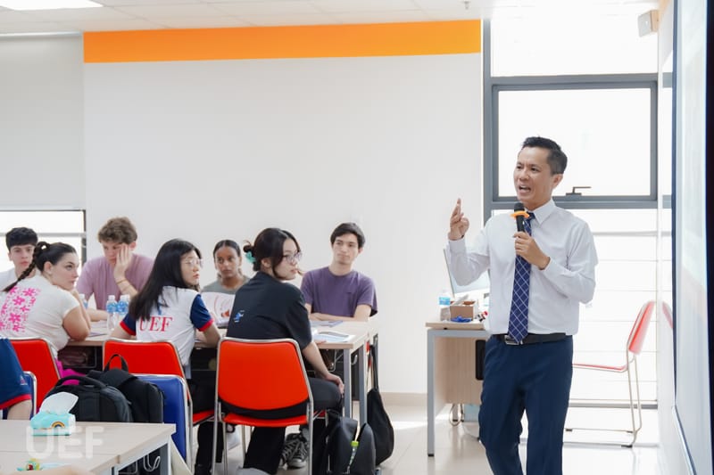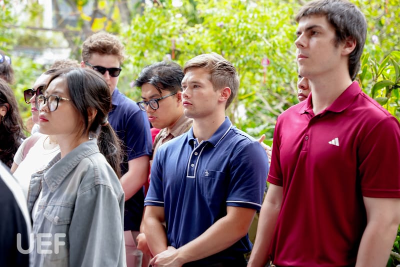 Early in the morning at UEF, the Pitt students attended a culture and religion class taught by Mr. Tran Dinh Tuan - Head, Tourism and Travel Services Management.