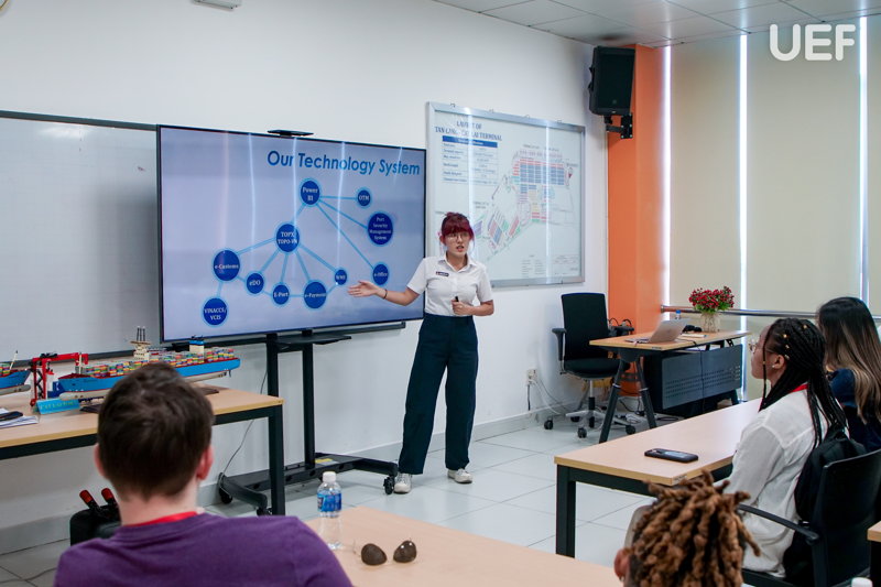The company representative provided an overview of Cat Lai's scale, operational areas, and main services, while also answering questions from international students about the operational process, control systems, and security in logistics. With a proactive learning spirit, Pittsburgh students paid close attention, took notes, actively engaged in discussions, and compared it with the logistics model in the U.S., thereby expanding their knowledge and practical perspectives.
