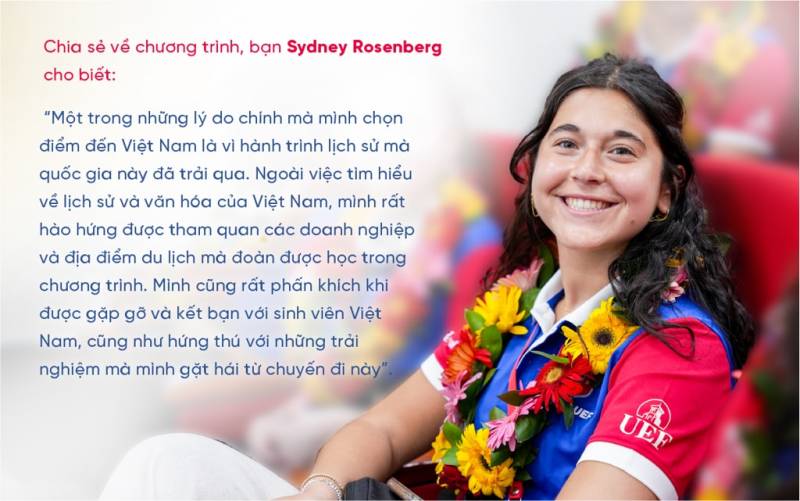 “One of the main reasons I chose Vietnam is its historical journey. Besides discovering the history and cultures of Vietnam, I am interested in visiting many enterprises and tourist destinations during the journey. I feel very excited about making friends with Vietnamese students and gaining wonderful experiences from this trip,” shared Ms. Sydney Rosenberg.