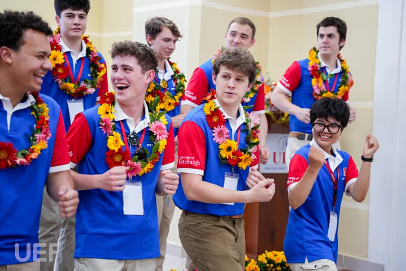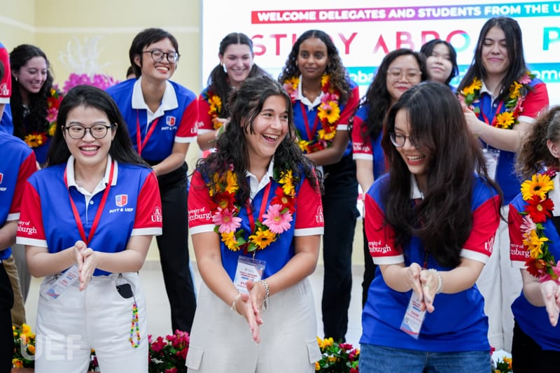 Owen Baker, another Pitt student, also expressed, "Today was my first day in Vietnam. I can't believe the warm welcome we received from UEF. The university played music, gave us beautiful flower necklaces, and cheered as we entered. The energy of this welcome is very different from how we welcome guests in the US."