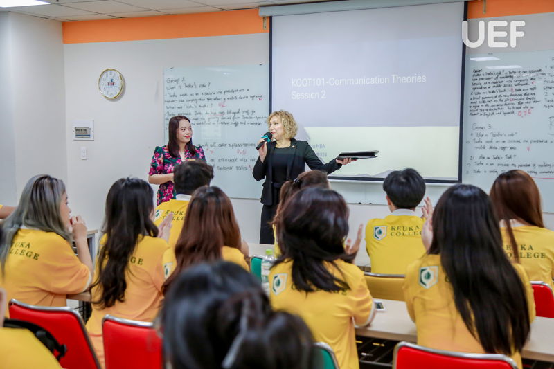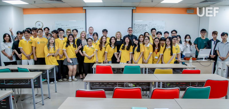 During their visit and work at UEF, the international delegation also had the opportunity to meet, interact with, and observe the academic progress of students enrolled in the U.S. bachelor’s program conducted in partnership with Keuka University. The President of Keuka University expressed her delight at meeting the students, shared deeper insights about the training program, and emphasized the university's commitment to supporting its learners.
