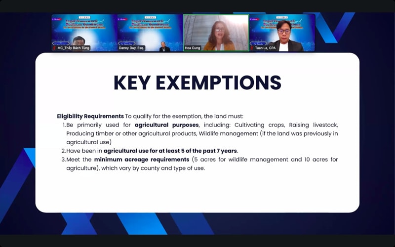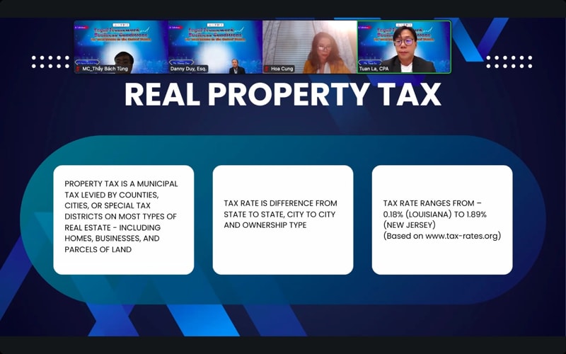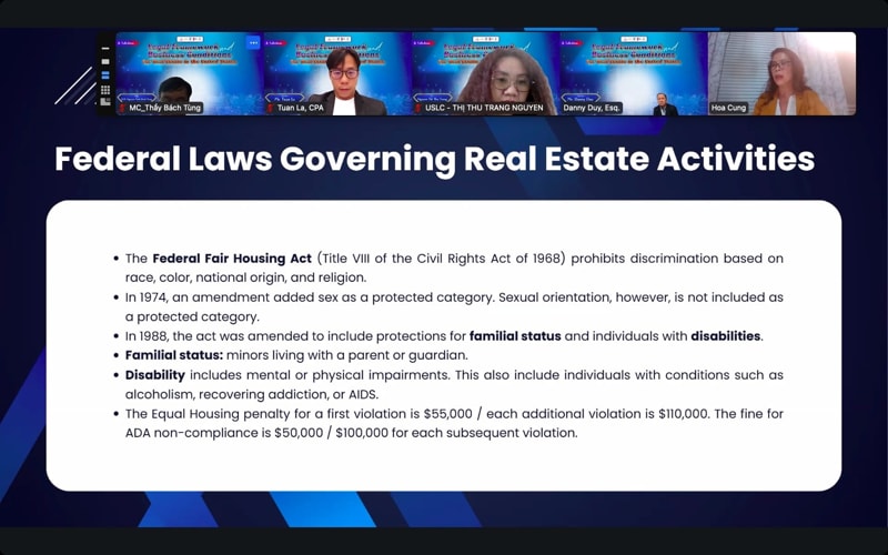 Especially, the complicated network of taxes for U.S’s real estate activities was the most asked and practical situations-given topic. During her sharing, Ms. Megan Cung helped UEFers to better understand Property Tax - the yearly paid tax based on the assessed value of the estate. This is one of the important financial obligations that foreign investors need to take note of when owning a real estate in the U.S.