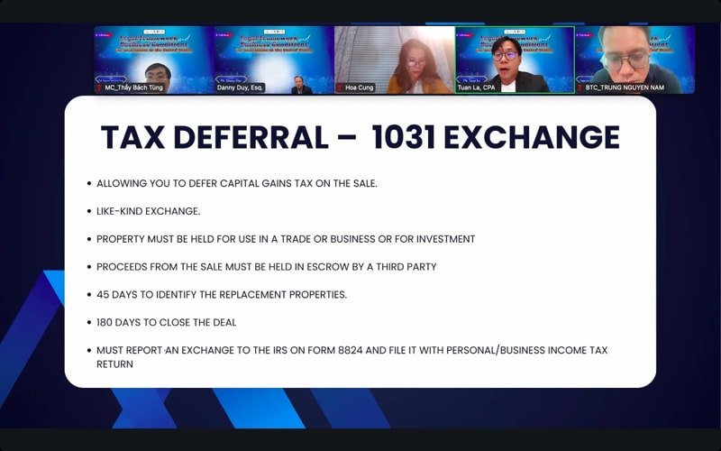 A special highlight during the workshop was the sharing about the tax deferral process through policies such as “1031 exchange” - a mechanism that allows investors to sell an estate and re-invest in another one with the same or higher value to defer Capital Gains Tax. Mr. Danny Duy analyzed the conditions and benefits this mechanism brought, which helped UEFers greatly recognize a clever financial policy for long-term investment.