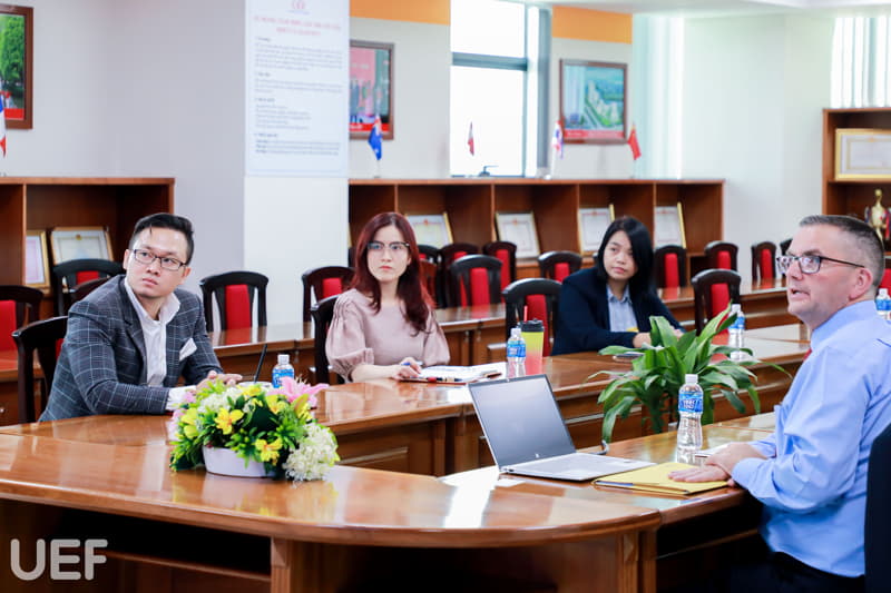 The meeting involved Dr. Do Huu Nguyen Loc – Vice President & Director, Ms. Huynh Tu Anh – Deputy Director, Ms. Tran Phuong Quynh – Assistant Director, from the UEF International Institute.
