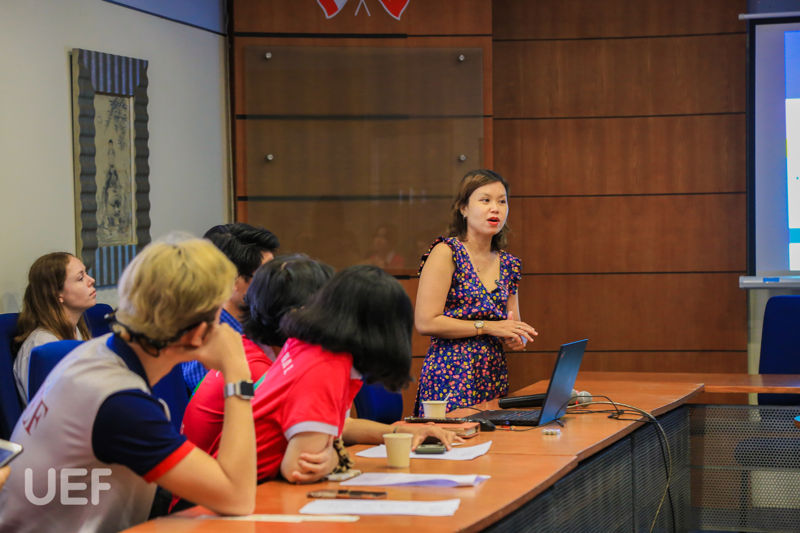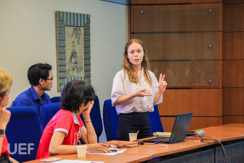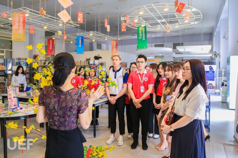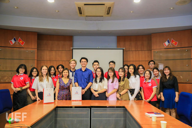 The final spot is IDECAF conference room where students are introduced with the historical context of cultural exchange between Vietnam and France as well as the role of IDECAF in cultural diplomacy between the two countries. With presentations from Mr. Nguyen Trong Duy - Assistant Director and Ms. Claire Mahéo - Project Specialist, UEF-ers have gained more knowledge about diplomacy and cultural networking of France in a foreign country.