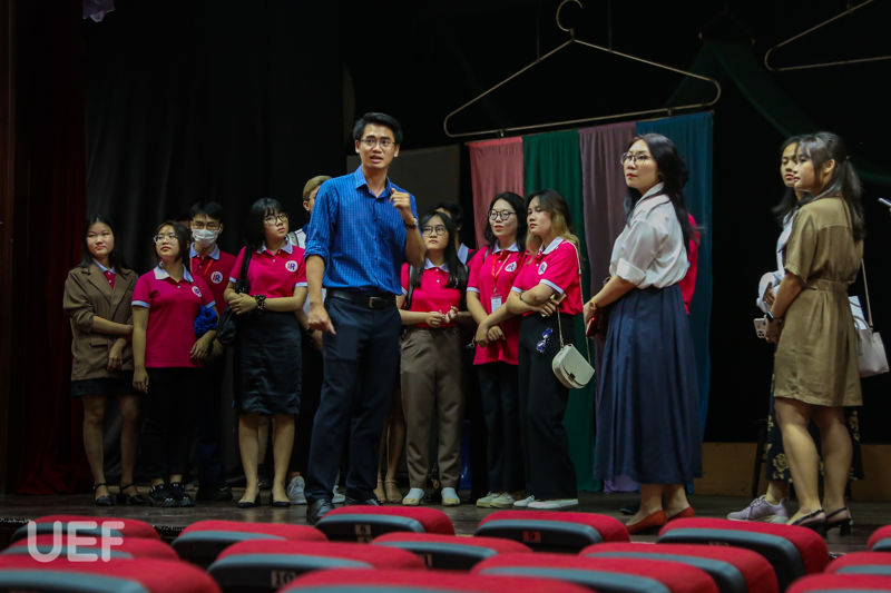 The trip starts off with sightseeing the art gallery where displays artworks of students from photography courses at IDECAF. The next location is IDECAF theater stage. UEF-ers can experience the feeling of standing on stage and learn about the process of building a show to be in the artists’ shoes.