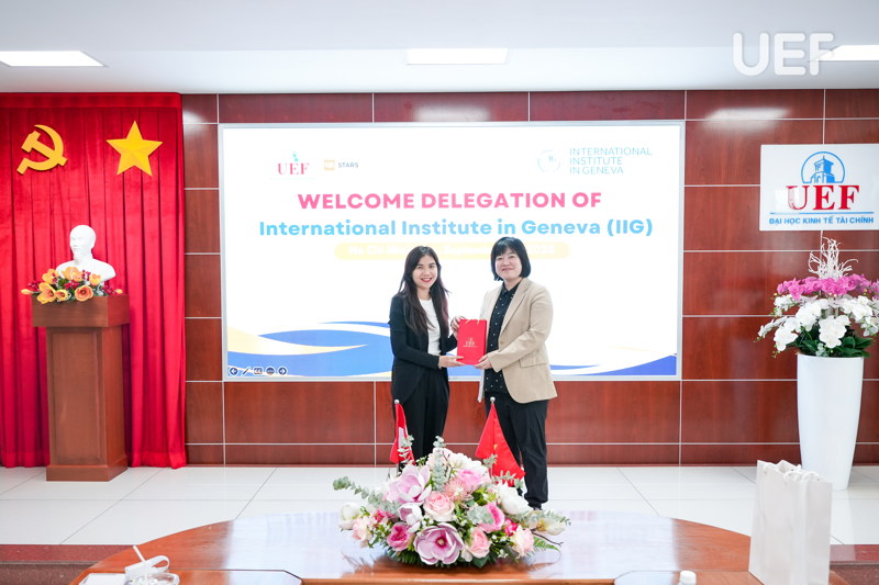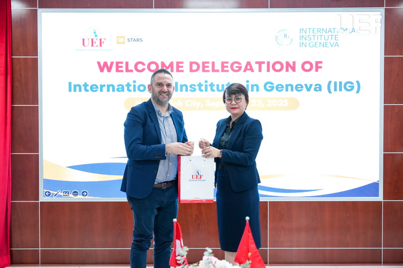 SEPTEMBER 23, UEF International Institute, in coordination with the Faculty of Public Relations and Communication, welcomed an international delegation from the International Institute in Geneva (IIG), Switzerland. The visit is associated with the workshop “IIG and UN Internship Opportunities for UEF Students”, offering more valuable global study and internship opportunities for UEF students.