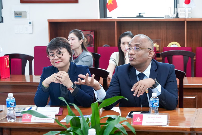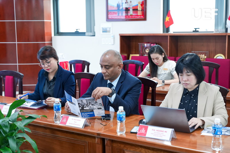 Attending the working session were Dr. Majo George - Dean of the Faculty of Economics, Dr. Nguyen Kim Thoa - Deputy Director of UEF International Institute, Ms. Hoàng Mi - Deputy Director of Faculty of Public Relations and Communication together with IIG representative - Mr. Tarek Kouatly - IIG Vice President and Ms. Nguyen Hoang Yen - Director of Admissions for Asia - Pacific region.