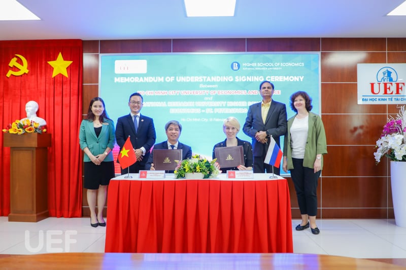 FEBRUARY 16 - Continuing to expand the cooperation "map" for students to immerse in various learning environments and gain more international experiences, the representatives of UEF had a meeting with the delegation from Higher School of Economics - National Research University (HSE University) - Saint Petersburg. During the meeting, the two universities discussed and signed the MOU, opening up new learning opportunities for students.