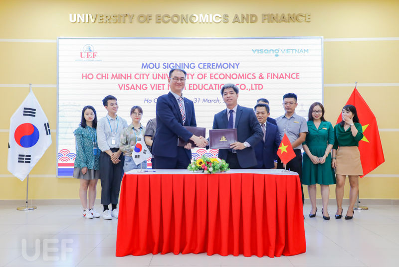 On March 31st, Ho Chi Minh City University of Economics and Finance has officially signed a memorandum of understanding (MoU) with Visang Viet Nam Education. This partnership is expected to path the way for UEFers to study Korean with modern educational technology.