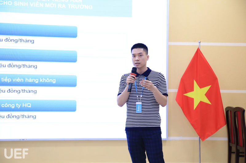 After the signing ceremony, Mr. Le Khac Anh - Director of eLearning Visang has provided a lot of useful knowledge to UEF students through the workshop “Career orientation for students majoring in foreign languages”.