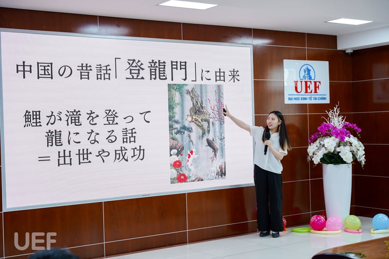 The event was attended by Dr. Do Huu Nguyen Loc - Vice President and Director of the UEF International Institute; Dr. Vo Van Thanh Than - Dean, Faculty of Languages and International Cultures; Ms. Cao Do Quyen, Program Assistant, Faculty of Japanese language; lectures and 40 students from the Faculty of Japanese Language. Notably, the event was also graced by the presence of guest speakers Funato Risa and Makita Haruka from Ritsumeikan Asia Pacific University (APU).