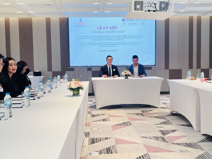 On the same day, UEF delegates signed the “Strategic cooperation for human resource development between UEF and the resorts system developed and managed by MIK Group”. Accordingly, students will have the chance to have their internship program and work in at the international hotels and resorts system of MIK Group, particularly three 5-star hotels and resorts in Phu Quoc.