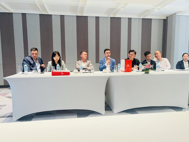 The meeting had the honor to welcome Mr. Huynh Minh Tan – MIK Group enterprise representative, Mr. Winston Gong – General Manager of Crowne Plaza Starbay Phu Quoc, Mr. Olivier Moies-Delval – General Manager of Movenpick Waverly Phu Quoc, and Mr. Alvaro Fernandez Lopez – Hotel Manager of Sol by Melia Phu Quoc. On behalf of UEF attending the meeting were Dr. Do Huu Nguyen Loc – Vice President & Director of UEF International Institute, Ms. Tran Phuong Quynh – Deputy Director of UEF International Institute, Dr. Hoang Tran Quang Duong – Head of Academic Operation.