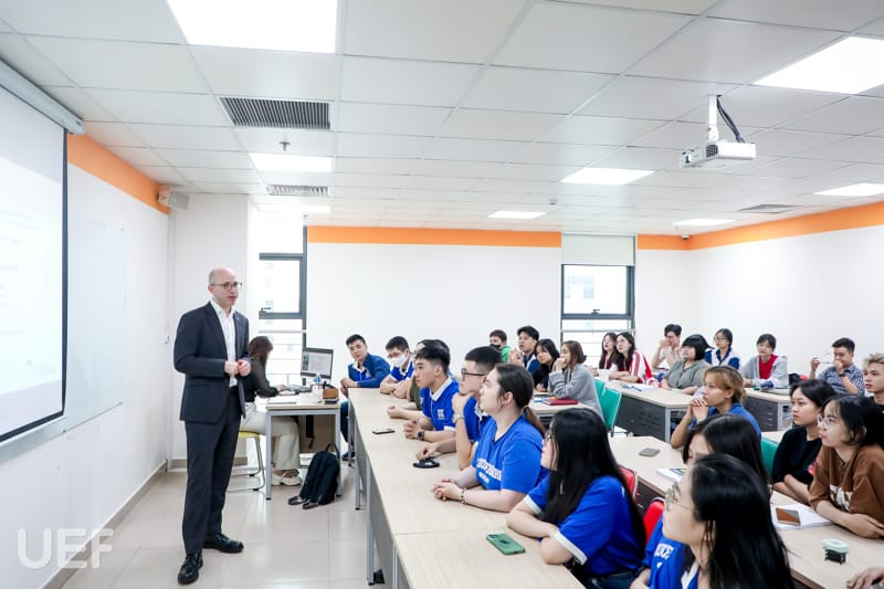This morning, UEF had a meeting with the leaders of University of Gloucestershire (UoG) - UK to discuss a collaboration strategy for implementing international programmes in the upcoming academic year. On the same day, UoG representatives also met with students from international bachelor’s programmes.